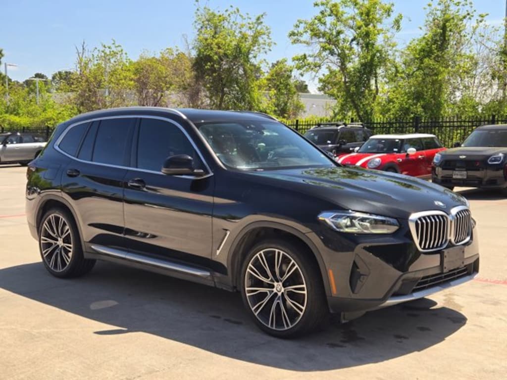 Thank you for your interest in one of Mini of The Woodlands's online offerings. Please continue for more information regarding this 2023 BMW X3 sDrive30i with 61,191mi. This BMW includes: HEATED FRONT SEATS Heated Front Seat(s) FINE WOOD OPEN-PORED ASH GRAIN TRIM Woodgrain Interior Trim CONVENIENCE PACKAGE Keyless Start Panoramic Roof Hands-Free Liftgate Generic Sun/Moonroof Power Door Locks Keyless Entry Sun/Moonroof Remote Trunk Release WHEELS: 21 Tires - Front Performance Aluminum Wheels Tires - Rear Performance PANORAMIC MOONROOF Panoramic Roof Generic Sun/Moonroof Sun/Moonroof BLACK SAPPHIRE METALLIC TACORA RED, PERFORATED SENSATEC UPHOLSTERY Premium Synthetic Seats *Note - For third party subscriptions or services, please contact the dealer for more information.* Treat yourself to an SUV that surrounds you with all the comfort and conveniences of a luxury sedan. Pull up in the vehicle and the valet will want to parked on the front row. This BMW X3 sDrive30i is the vehicle others dream to own. Don't miss your chance to make it your new ride. Enjoy the drive without worrying about directions thanks to the built-in navigation system.